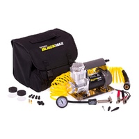 The Bushranger Black Max Compressor that really packs a punch. This little workhorse is backed by Bushwakka's 5 year warranty. The Black Max is a powerful 12 volt motor and air pump, its fast and reliable delivering 66 litres per minute. Smart engineering and manufactured tough to accredited to International ISO9002 Standards. 2.4 metre power lead, direct battery clamps with an in-line fuse, no more voltage drop or blown fuses in vehicles fuse box, easy and simple to use. This is an essential piece of 4x4 equipment, the built in tyre deflation valve allows for controlled deflation of vehicles tyre pressure to drive in sand, mud or rocky terrain.
