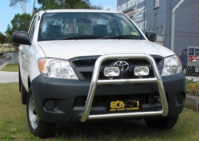 All ECB Nudge Bar - Series 2 feature welded spot light mounting tabs on the middle horizontal tube. This allows for optimum and secure placement for auxiliary lighting.