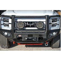Designed in Australia to meet demanding conditions, the King Series Plus features a strong loop-style frame that extends protective coverage higher across the front of the vehicle. Constructed from premium 3 mm high-grade steel plate, it replaces the factory bumper entirely, improving structural strength, approach angles, and impact resistance. Its streamlined integration ensures the vehicle maintains a clean, purposeful appearance while boosting overall resilience.