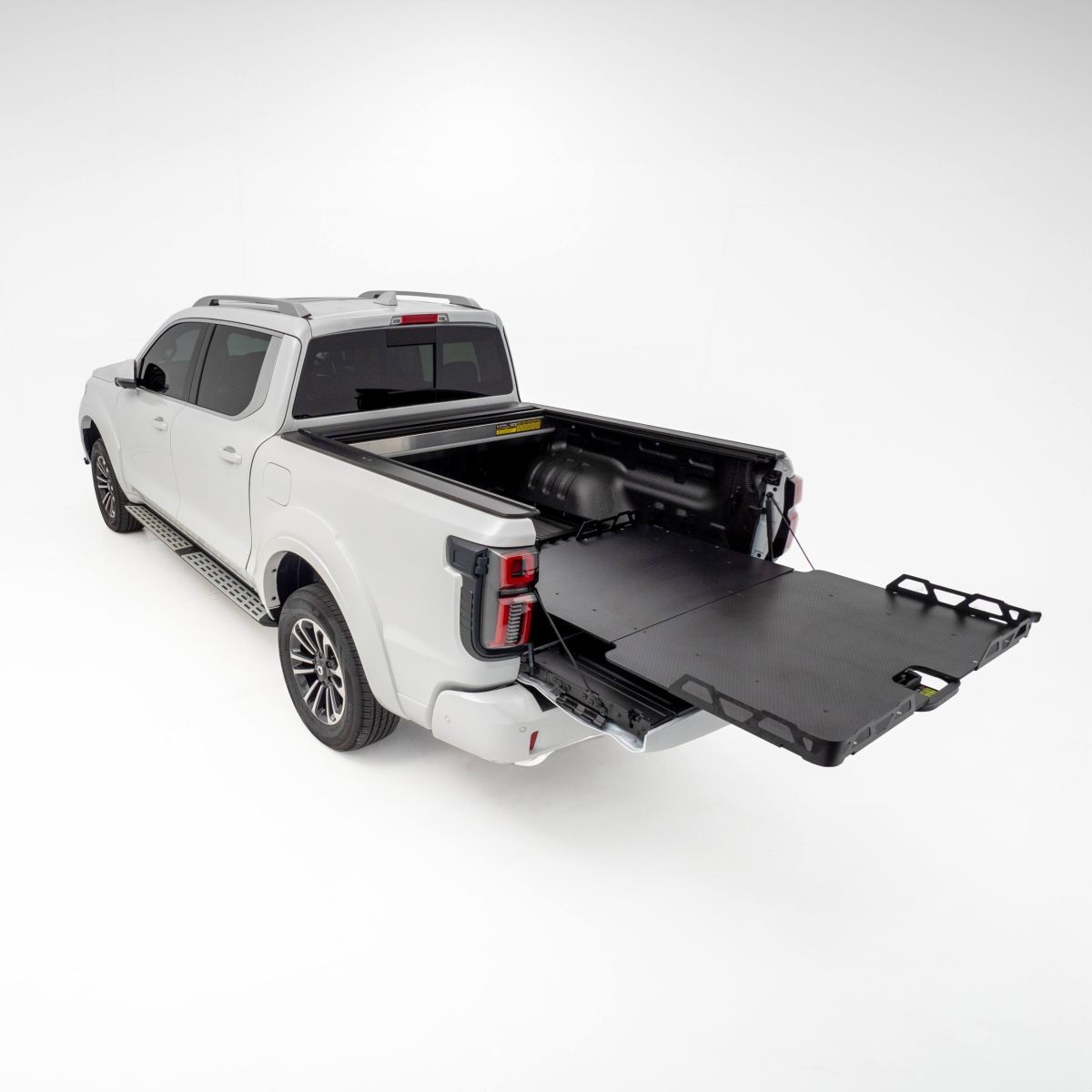 The ultimate solution for easy access and management of your vehicle's tub. The HSP Load Slide is a purpose-built, retractable slide tray featuring a heavy-duty steel frame and a custom-cut platform that contours perfectly to your vehicle, wrapping around the wheel arches for a seamless fit. Operated via a simple handle with multiple latching positions and a dedicated side rail, it’s designed to give you better control over your cargo. Compatible with canopies, it’s the ideal upgrade for convenience, durability, and functionality.