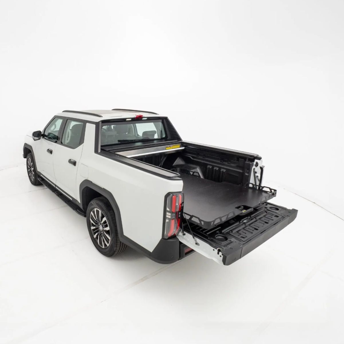 The ultimate solution for easy access and management of your vehicle's tub. The HSP Load Slide is a purpose-built, retractable slide tray featuring a heavy-duty steel frame and a custom-cut platform that contours perfectly to your vehicle, wrapping around the wheel arches for a seamless fit. Operated via a simple handle with multiple latching positions and a dedicated side rail, it’s designed to give you better control over your cargo. Compatible with canopies, it’s the ideal upgrade for convenience, durability, and functionality.