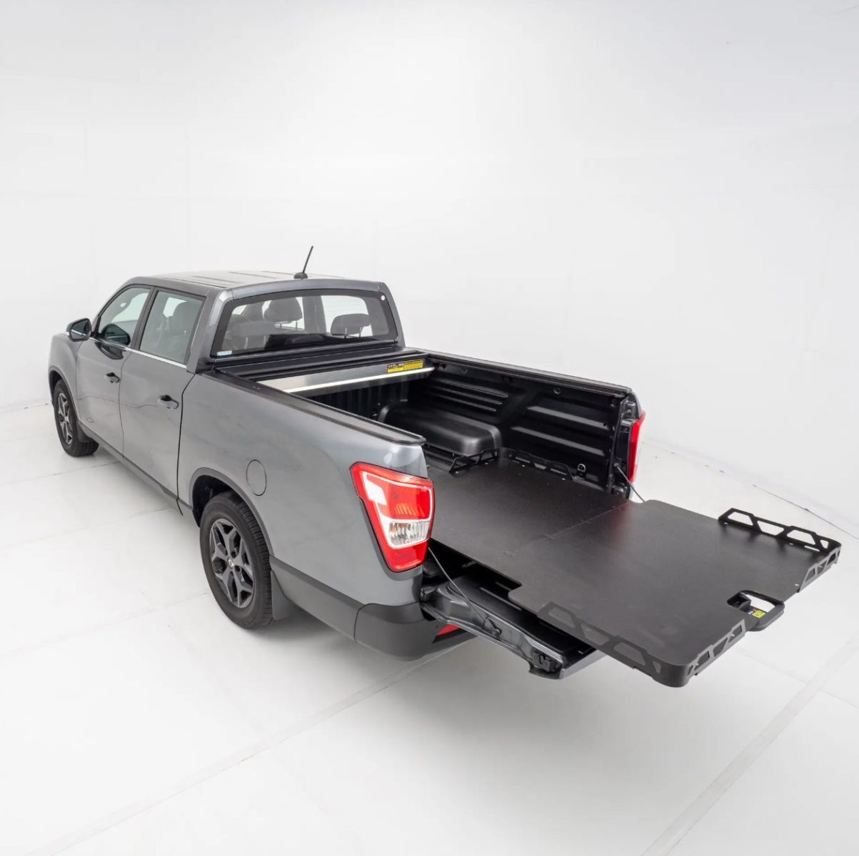 The ultimate solution for easy access and management of your vehicle's tub. The HSP Load Slide is a purpose-built, retractable slide tray featuring a heavy-duty steel frame and a custom-cut platform that contours perfectly to your vehicle, wrapping around the wheel arches for a seamless fit. Operated via a simple handle with multiple latching positions and a dedicated side rail, it’s designed to give you better control over your cargo. Compatible with canopies, it’s the ideal upgrade for convenience, durability, and functionality.