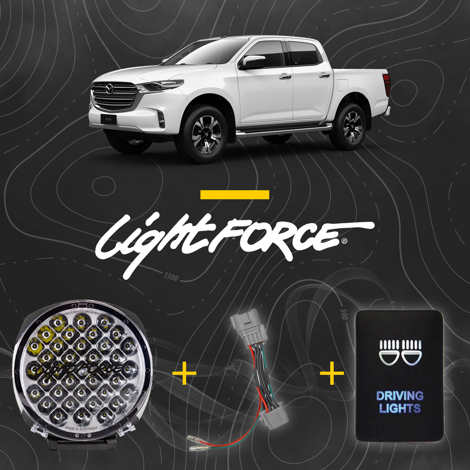 The vehicle specific Lightforce Genesis LED Driving Light Kit includes everything you'll need for the ultimate Lightforce set-up.