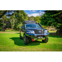 The S5 Patrol finally looks good. No offense to Nissan but the older Y62 models didn't quite have a tough look about them, however the Series 5 fixed that with a much improved front end. Well the Cobra bar from Offroad Animal makes it look even better. You can give a serious face lift to your Patrol and give it that cool aggressive look that will make you smile every time you look at it. Not only does this bar look the part but it's super functional as well. A great platform for a winch and lights and does the job of protecting the front from animal strikes and offroad mishaps.
