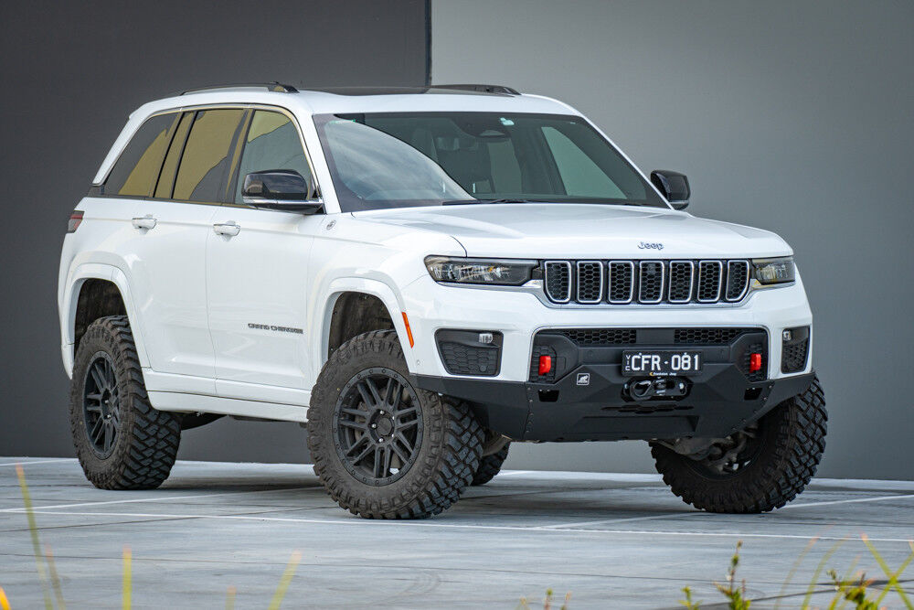 While the Grand Cherokee WL (5 seater) and L (7 Seater) are a good looking rig, they lack some frontal protection and have a vulnerable front end not really that suited for going off road. With no protection you're likely to either scratch, gouge or even rip off your factory bumper. Fear not, Offroad Animal has a super stylish Pre runner style steel front bumper system for your rig. This steel bumper basically acts like a bash plate system while give you tons more clearance which also reduces the risk of front end damage.