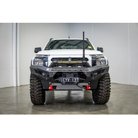 Meet the Predator bull bar, the ultimate Mitsubishi Triton upgrade. Crafted from reinforced steel, zinc plated and powder coated in matte black powder coat. It's built to tackle tough terrain while adding a sleekl aggressive look to your ride. Designed for easy installation, it fits your Triton perfectly, enhancing protection and style wihtout compromising functionality. With integrated LED mounts for improved visibility, the Predator bar turns your Triton into and Off-road conqueror. Ready for adventure? Equip your Triton with the Predator bull bar.