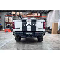 The Ram factory rear bumper is a nice shinny bar, but unfortunately offers pretty much no protection. Especially offroad your expensive tub is vulnerable. I know because on my personal ram I tore the bumper off and crunched in the tub. It sucked, cost me thousands to get a new tub on and was a giant pain in the arse. Too bad I didn't have the Offroad Animal rear bar on. If I had there would have been no dramas.