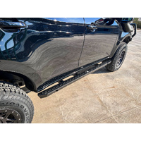 Okay these rock sliders kick arse. I mean seriously look at them. No other comes close. Designed with serious protection in mind as well as stunning good looks, you'll be the envy of all with these bad boys installed. Don't let your vulnerable sills cop a hiding. Ditch those factory piss-weak steps off and install these bad boys for piece of mind protection and great access as a step.