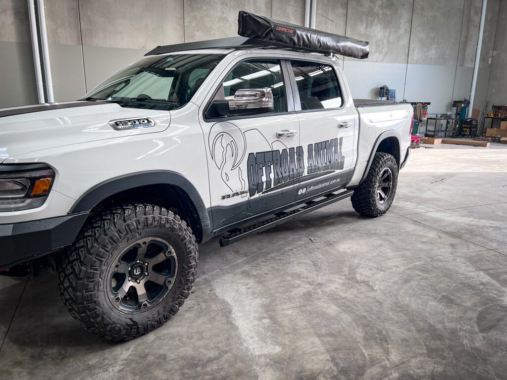 The factory Ram side steps are a great step but horrible rock slider. Not great for going offroad. So Offroad Animal sliders solve those problems. They are super tough, high clearance and still present as a great step.