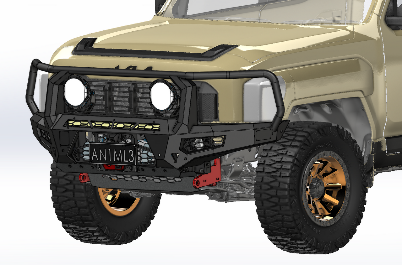 - Weighs much less than your typical bull bar while still be strong. (We achieve this by making the bar sit closer to the vehicle and not sticking out so far.)