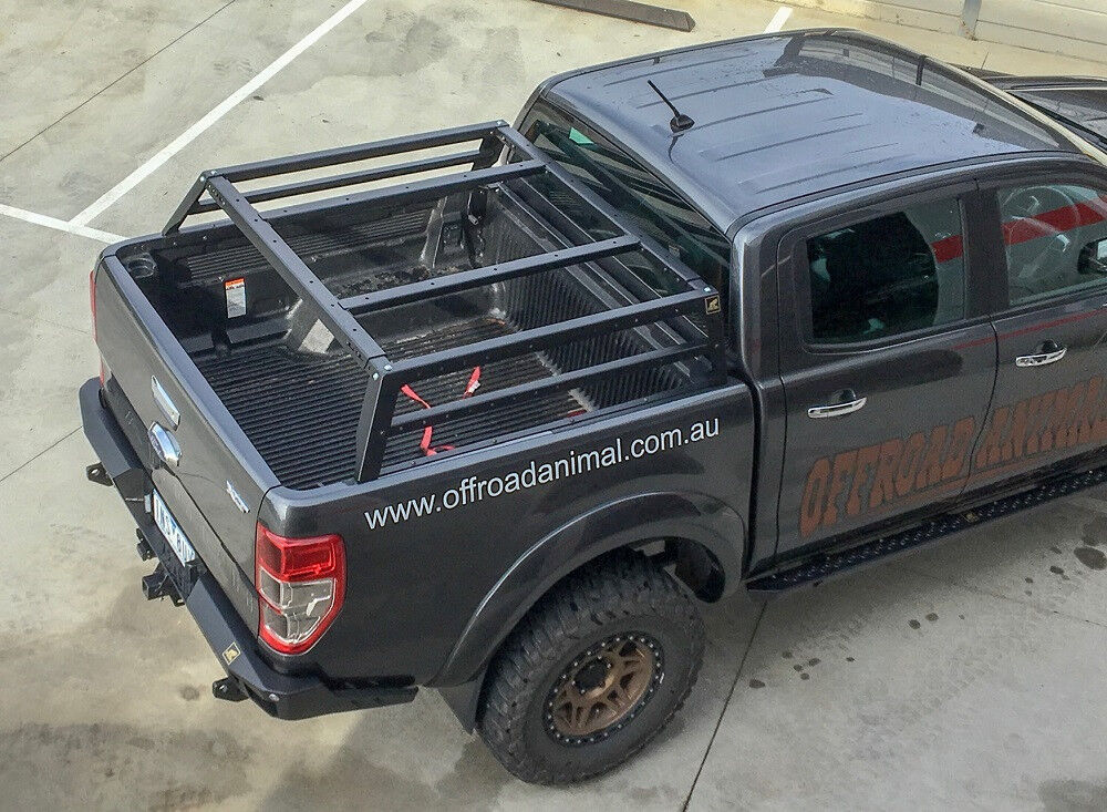 The tub on the back of a Ute is very versatile, but sometimes you need a few of your commonly used accessories a bit more accessible. Quick access to your Max Trax, shovel, Hi Lift Jack, or what ever. Or a suitable mount for your roof top tent.  The Offroad Animal tub rack allows all of this, at the same time too. Nice