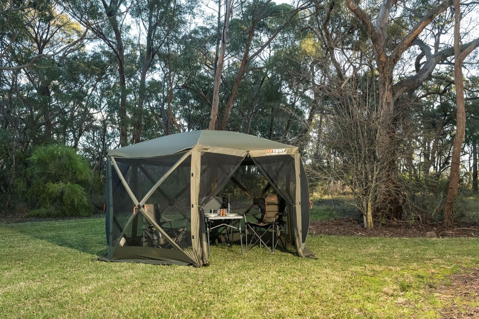 It easily pops into shape in seconds to provide you with shelter. The OZTENT Screen House Hex uses ultra-tough mechanisms, is shaped to provide plenty of usable space and is surrounded with fine mesh to keep the bugs out and the views great. Optional walls are available to attach to each side to provide extra protection when needed.