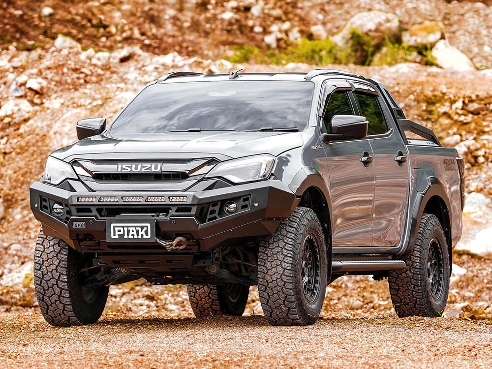 The Piak Genesis No Loop Bullbar, a robust and stylish addition to your vehicle that's engineered to withstand the rigors of off-road exploration while maintaining a sleek appearance. Crafted from high-grade steel, this bullbar is built to last, providing unparalleled protection and durability.