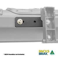 By using the supplied Soundbar Adaptor, the Soundbar fastens to the quick release RacksBrax HD Hitch. The Soundbar can either fasten via its feet or via the solid metal spine on the rear of the Soundbar.