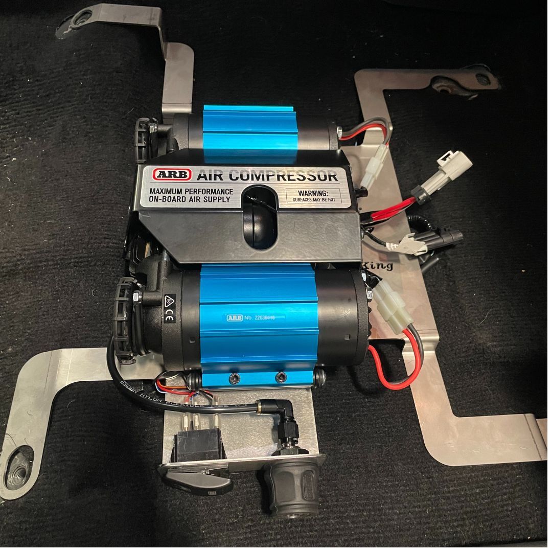 Perfect for enthusiasts and professionals alike, this mount provides a firm base for your air compressor, allowing you to take full advantage of the convenience of onboard air. Compressed air can be used for a wide range of applications, including inflating tyres, operating air lockers, powering air tools, adjusting air springs, or activating a winch free spool — making it an essential upgrade for any setup.